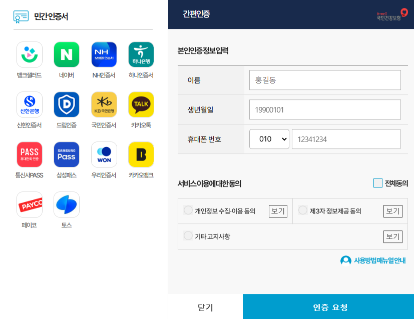 1. 건강보험공단 홈페이지 조회