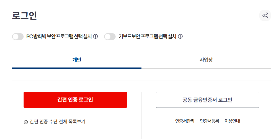 - 로그인: 공인인증서 또는 간편인증서를 이용하여 로그인합니다. 공동인증서가 없다면 사전에 발급받아 두어야 하며, 이는 안전한 개인 정보 보호를 위해 필수적입니다.